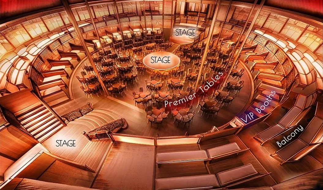 Enjoy a sweeping view of the stage in our intimate venue, where no seat is far from the action. Balcony seating is open, without tables, offering a relaxed way to take in the full spectacle of the show.